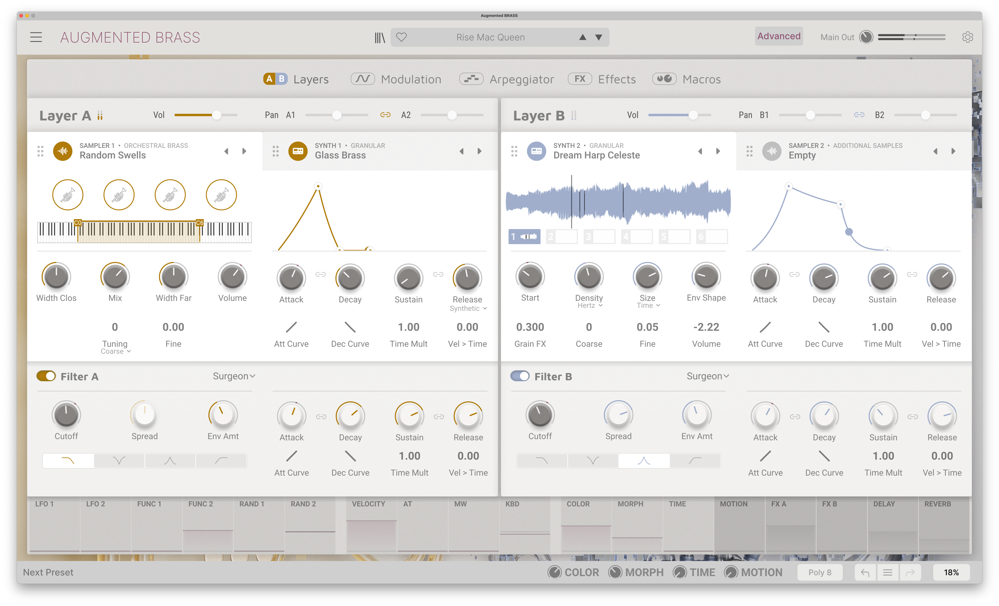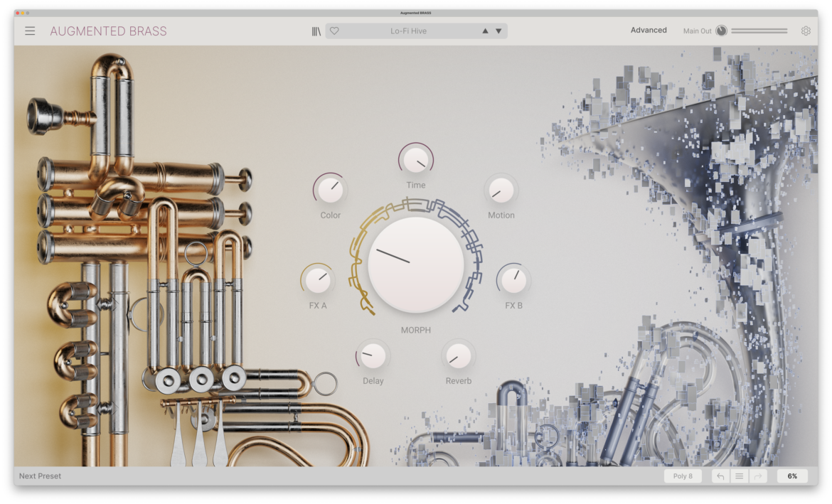 Avec son interface simple et ses centaines de presets prêts à l’emploi, Augmented BRASS permet de commencer à composer rapidement peu importe votre niveau. Avec le potard de « Morphing » vous pouvez facilement ajuster la balance entre les différents layers, passer du son authentique au synthétique et bien d’autres paramètres.